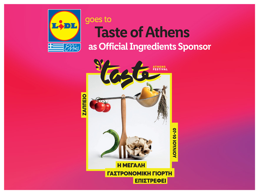 Η Lidl Ελλάς συμμετέχει ως Official Ingredients Sponsor στο φετινό Taste of Athens, που θα διεξαχθεί για τέσσερις ημέρες, από την Πέμπτη 7 έως την Κυριακή 10 Ιουλίου στο Ζάππειο και τελεί υπό την Αιγίδα του Υπουργείου Τουρισμού και του Δήμου Αθηναίων.